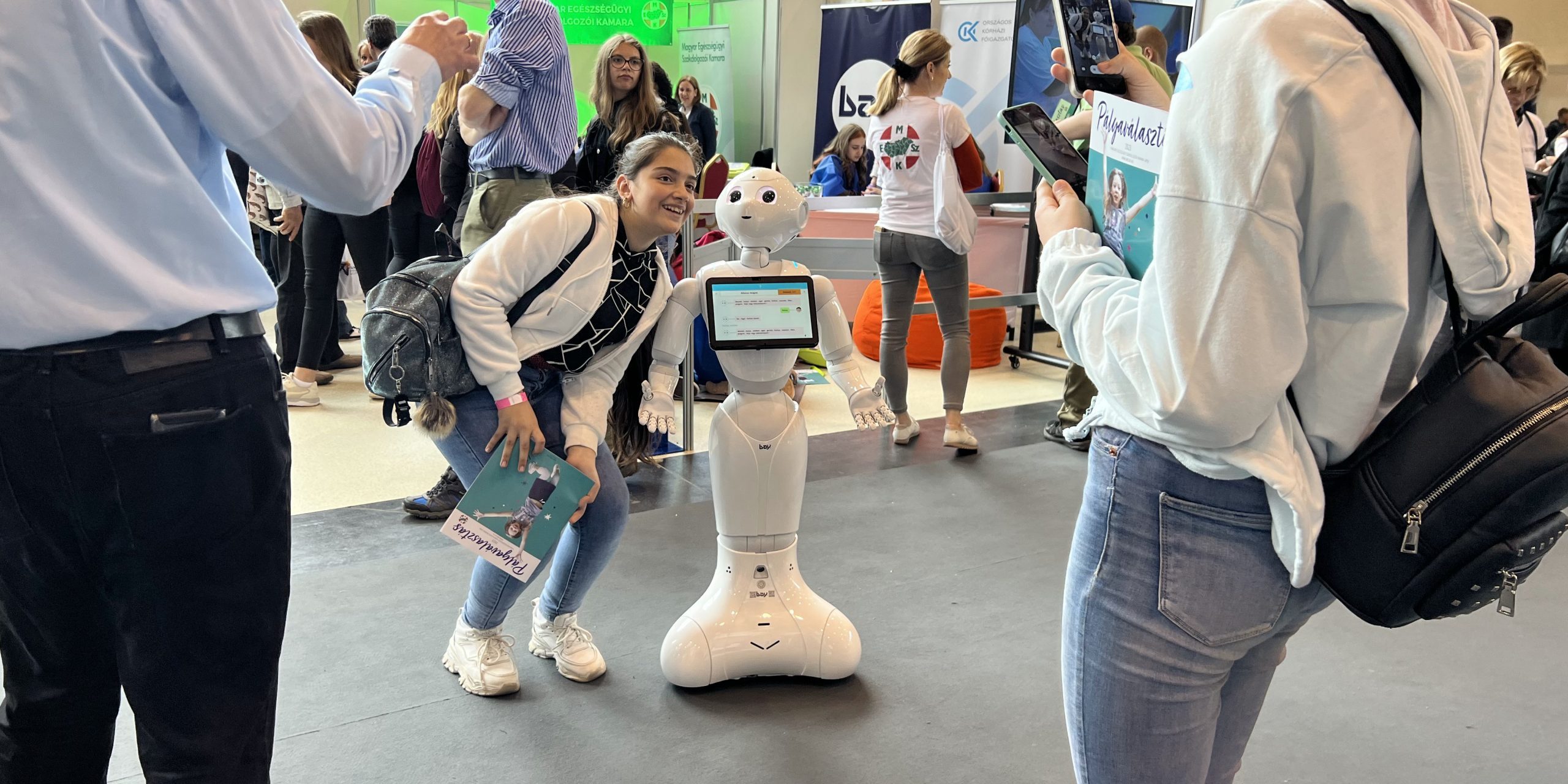 Last year saw the successful launch of Pepper – the humanoid robot is one of the main subjects of our “Pécs FIEK” (GINOP-2.3.4-15-2020-00010) project at the MESZK stand at the SzakmaSztár Festival. The Festival opened its doors to the public again this year, where not only health professions were represented, but almost every profession in our country.
